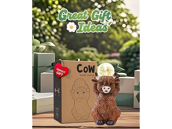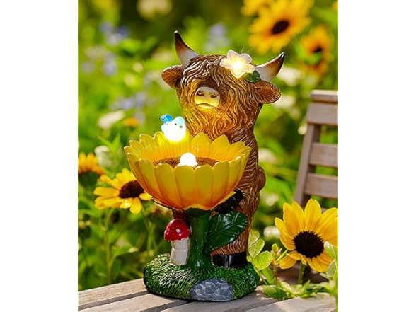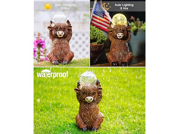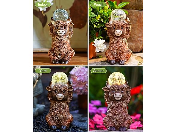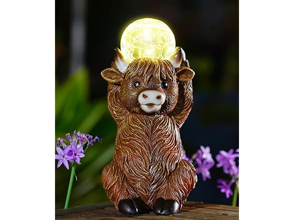 Nacome Solar Highland Cow Garden Decor - Outdoor Statues with Bubble Ball Balcony Lown Patio Porch Sculptures Front Yard Art for Outside - Birthday Gifts for Mom Grandma Women(Brown)