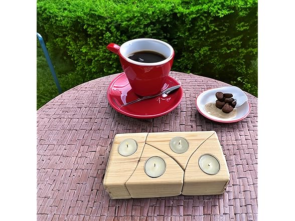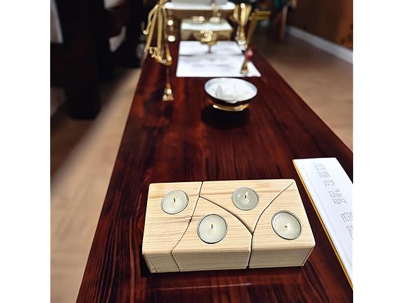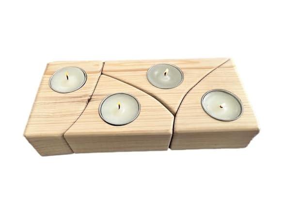Solid Pine Wood 4 Tea Lights Candle Holders Handmade Birthday Party Home Table Wedding Gift Decoration Centerpieces for Tables