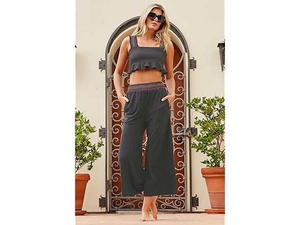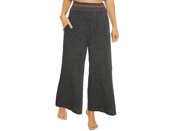 Soluna Swim Sunset Women's Cropped Pants, Side Pockets, Casual Wide Leg, Beach Cover Ups, Charcoal, Medium