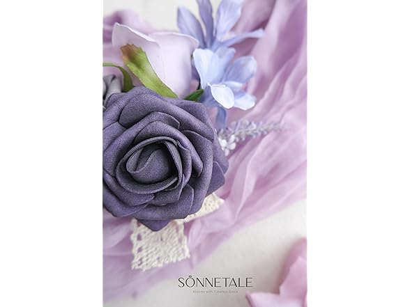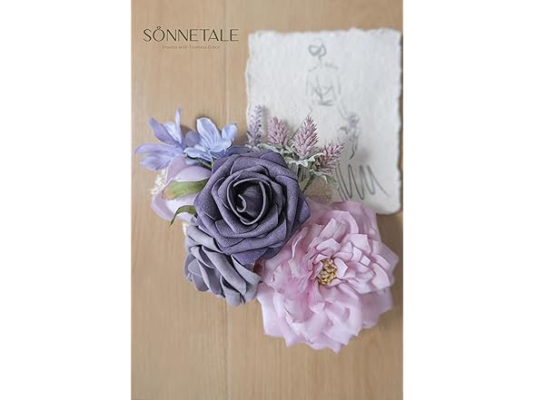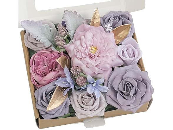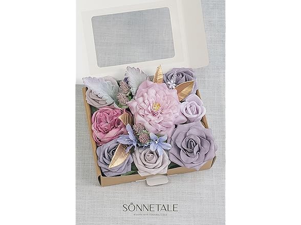 Sonnetale Artificial Flowers and Greenery Combo Box Set, Fake Flower for DIY Wedding Bridal Bouquet, Centerpieces Party Engagement Floral Arrangement Decor (Gold & Lavender, Mini)