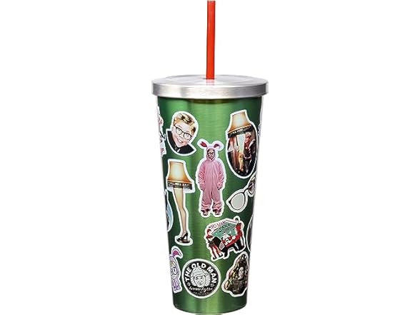 Spoontiques A Christmas Story Stainless Steel Tumbler, 24oz - Double Wall Insulated Travel Cup with Straw