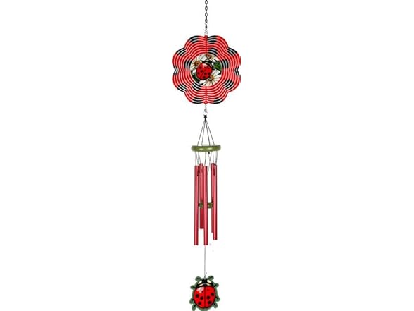 Spoontiques Ladybug Wind Spinner Chime - Outdoor Garden Décor - Decorative Chimes for Yard, Garden, Backyard and Patio Decoration
