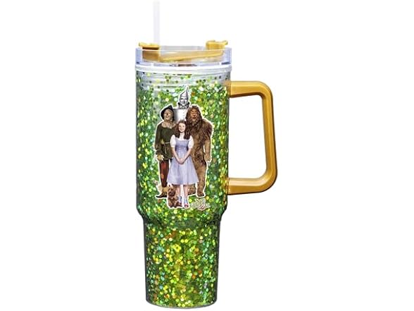 These extra large glitter filled travel mugs are double walled acrylic and include a travel lid featuring both a straw and a sliding lock. Each mug is 11" tall and holds 40 ounces. Perfect for hot or cold beverages and fits most vehicle cup holders.