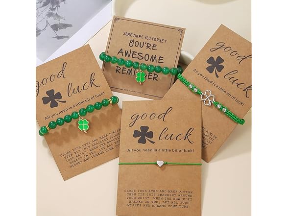 - 🍀Green Leaf Charm Bracelet:Clover represents faith, hope and love. Let these lucky beaded bracelets fit into your life not only on St. Patrick's Day, but throughout the year.