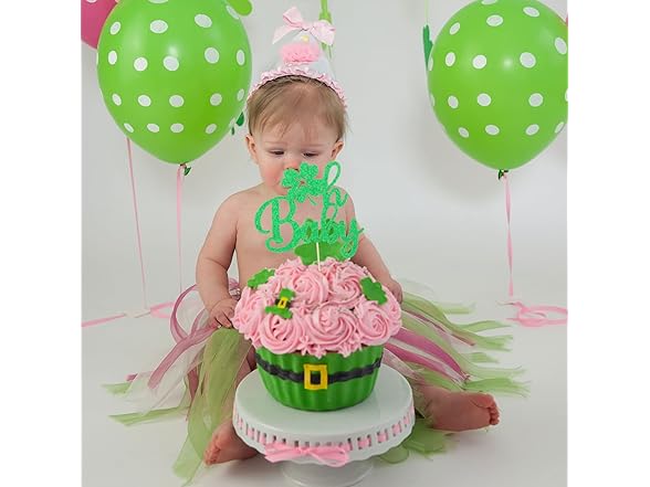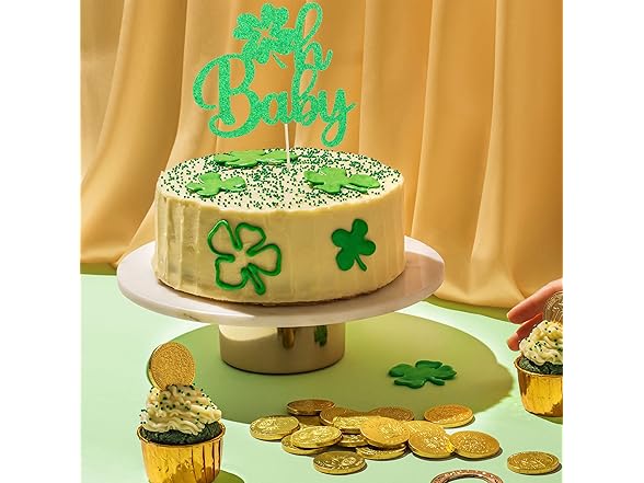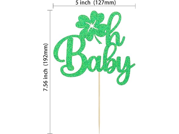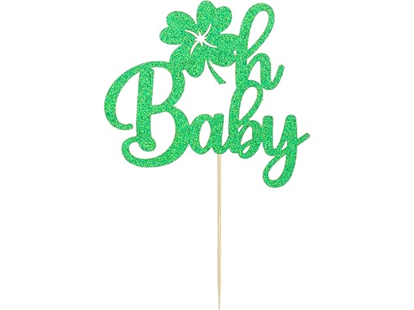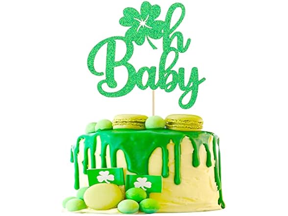 Gyufise 1 Pack St Patrick's Day Lucky Oh Baby Cake Topper with Lucky Four Leaf Green Glitter Babyshower Shamrock Oh Baby Cake Decorations for St.Patricks Babyshower Party Supplies Birthday Decorations