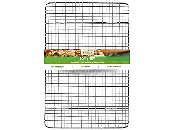 Oven Safe, Heavy Duty Stainless Steel Baking Rack & Cooling Rack, 10 x 15 inches Fits Jelly Roll Pan