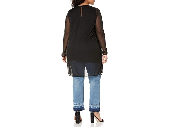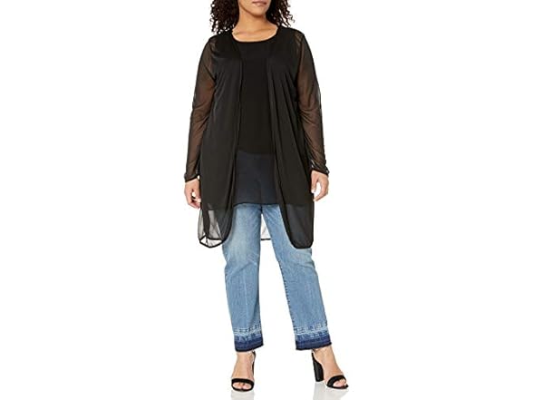 Star Vixen Women's Plus-Size Long Sleeve Lightweight Mesh Open Cardigan, Black Solid, 2X