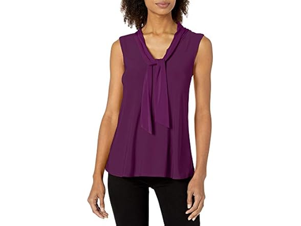 Star Vixen Women's Sleeveless Tieneck Blouse, Plum, L