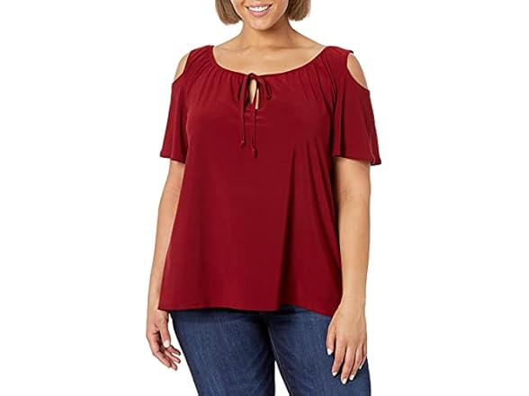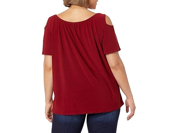 Star Vixen Women's Plus-Size Short-Sleeve Cold-Shoulder Peasant Top, Burgundy, 2X