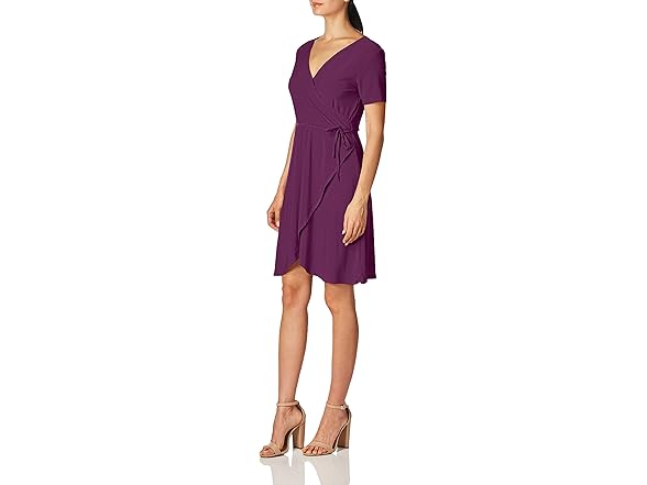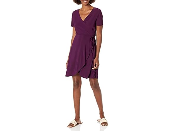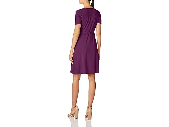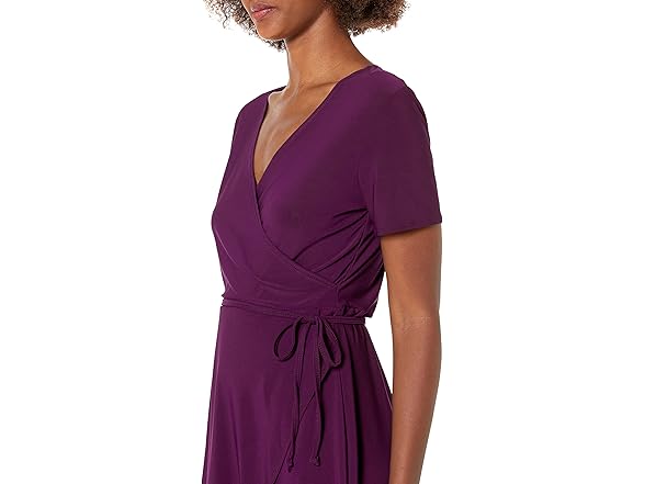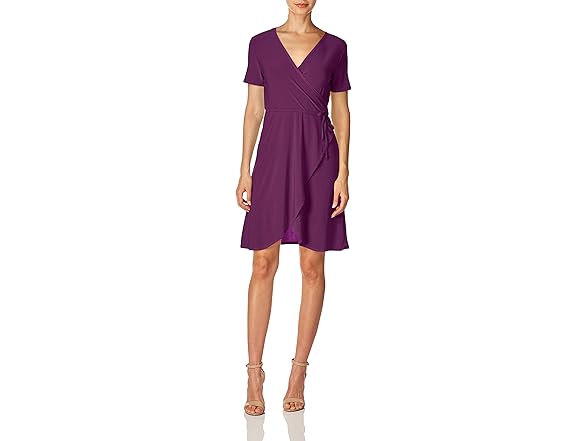 Star Vixen Women's Petite Short Sleeve Ballerina Wrap Dress, Purple, PM