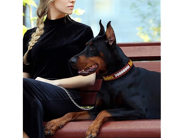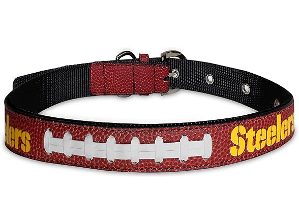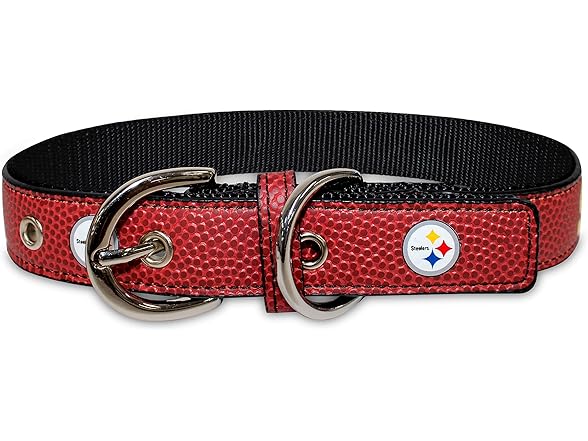 Pets First Tough Leather Pet Collar NFL Pittsburgh Steelers Premium Dog Collar, Limited Edition, Size Medium. Best & Strongest Heavy-Duty Dog Collar!, Medium (16-20"" Long & 1"" Wide)
