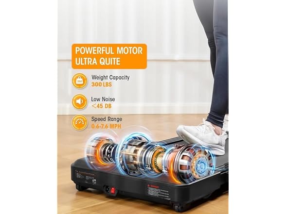 - 【Powerful Quiet Motor】Treadmill for home with 3HP powerful quiet moter, the walking pad treadmill is able to support a weight capacity of 300lbs and allows walking, jogging and running with 0.6-7.6mph speed. Moreover, the walking pad treadmill is whisper-quiet which is perfect for home, apartment or office exercise without worrying about disturbing others. Enjoy a comfortable exercise and to improve cardiovascular fitness and boost health