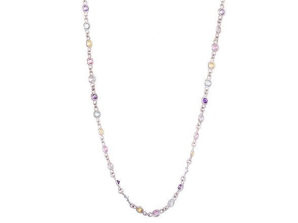 (1) Bliss - NN217849R-ZM2-24 - 24" 18K Sterling Silver Multi Colored AAA Simulated Diamond Bezel Link Necklace
