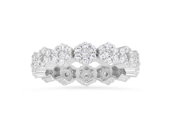 Queen Jewels Sterling Silver Floral Eternirty Band Ring