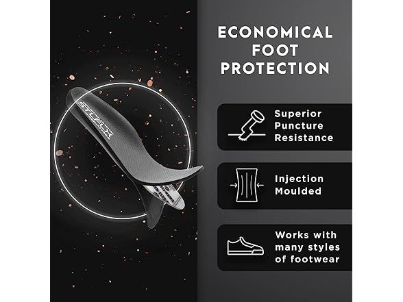 STLFLX - Non-Metallic SoleGUARDZ, Puncture Resistant Insole, Shoe Sole Insole for Regular Shoes, Work Boots, & Safety Footwear, Black, Polyurethane, Unisex, 9-10 US Men & 10-11 US Women, SEN-053 Large