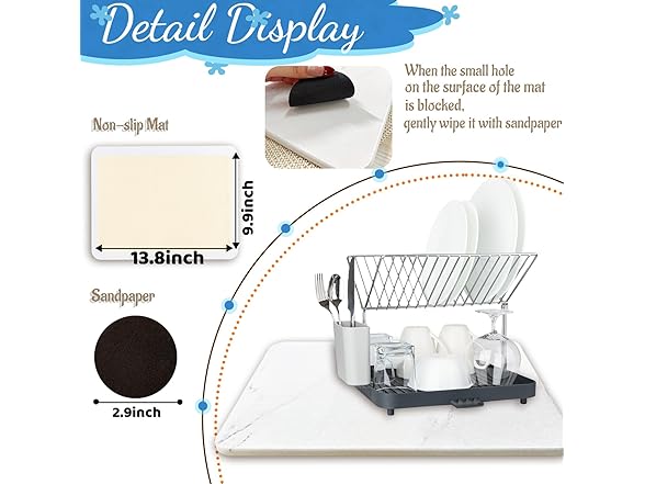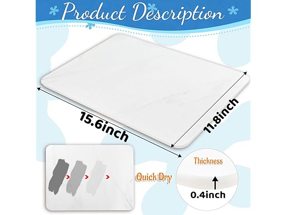 Stone Dish Drying Mat,Quick Dry Pad,Absorbable Stone Dried Tray for Multi Purpose,Kitchen,Bathroom Counter,15.6 x 11.8inch