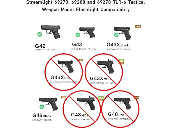 Streamlight 69270 TLR-6 100-Lumen Pistol Light with Integrated Red Aiming Laser Designed Exclusively and Solely for 42/43/43X/48 (No Rail or MOS), Black
