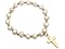 678-210-b ladies 18k gold plated stretch pearl bracelet with cross charm