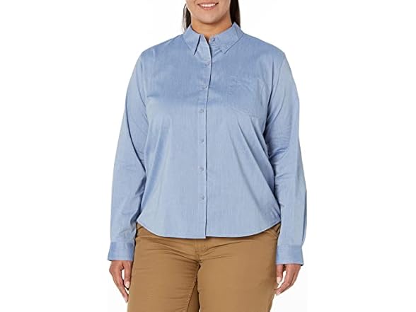 Dickies womens Long Sleeve Stretch Poplin Work Button Down Shirt, Limoges, Small US