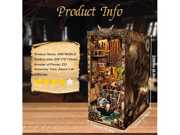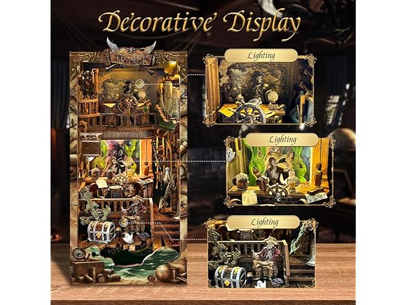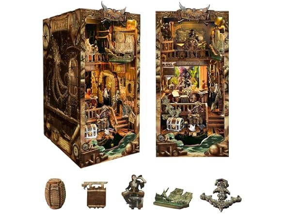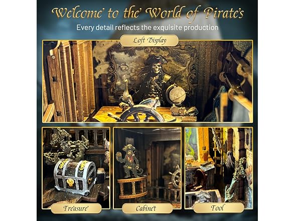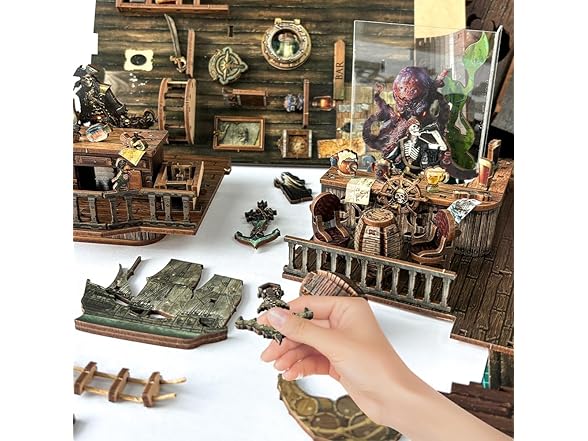 - DIY Fun: Craft Your Own Miniature Masterpiece. Ideal for book nook kits for beginners, this kit includes 207 precision-cut wooden pieces and an intuitive step-by-step guide. Assemble the pirate ship’s hull, position tiny crates, and layer "aged" planks with ease—no prior experience needed