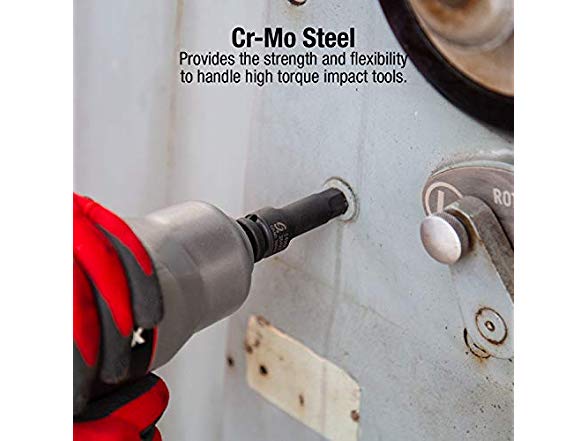 - CR-MO Steel: Provides the strength and flexibility to handle high torque impact - tools. Solid one piece