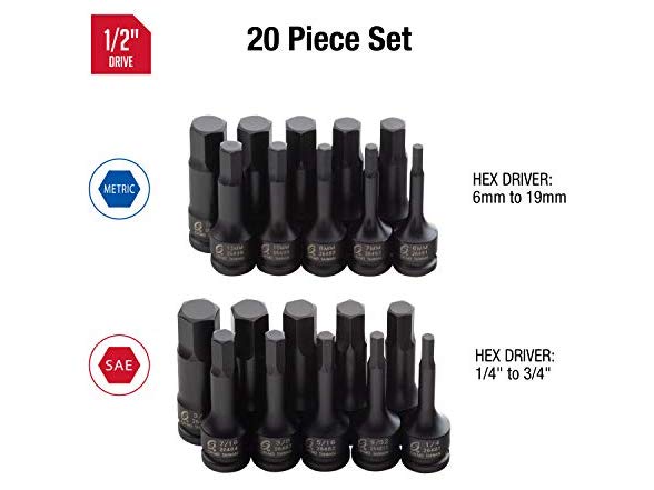- (1) Sunex Tools 2637 1/2" Drive Master Impact Hex Driver Set