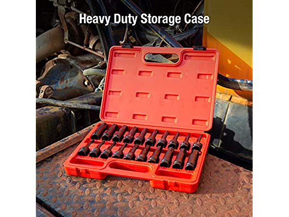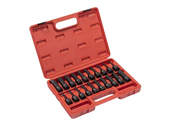 This Sunex 3/4 inch drive 17 piece socket set includes the most common sizes and years of usage. It is made of CR-MO alloy steel for long life and fully guaranteed. Includes a heavy duty blow molded storage case. Set contains 10 SAE sockets and 10 metric sockets: 1/4", 9/32", 5/16", 3/8", 7/16", 1/2", 9/16", 5/8", 11/16", 3/4", 6mm, 7mm, 8mm, 10mm, 12mm, 14mm, 15mm, 17mm, 18mm, 19mm.