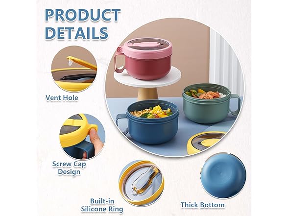 - [Multiple Functional: Ramen bowl can not only be applied to store noodles, but also to contain soup, lunch, vegetables, snacks, fruit, rice and so forth, fitting dorms, schools, offices, picnics and camping.