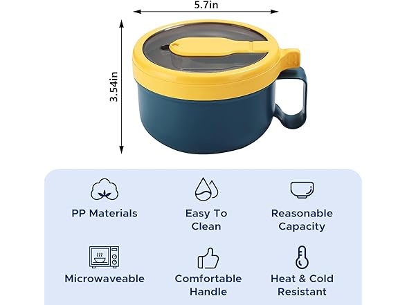 - [Time Savings]: You can prepare a scrumptious feast in next to no time, ideal for occupied with working grown-ups and school dormitories. Using a ramen bowl with a lid can significantly accelerate cooking. Only have a few minutes to spare for a meal? Our instant ramen bowl is perfect for when you're short on time and craving ramen.