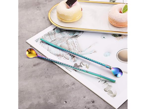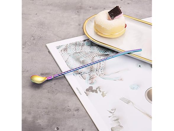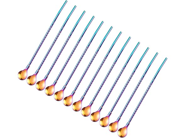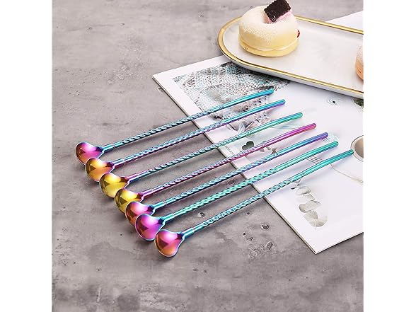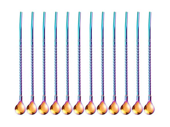 50Pcs Reusable Metal Spoon Straws in Bulk For Wholesale,8.5'' Stainless Steel Drinking Rainbow Straws Spoon Yerba Mate Bombilla Straws for Cocktail,Iced Coffee,Milkshake,Smoothies (Rainbow-50Pack)