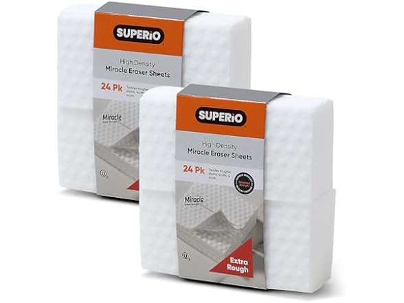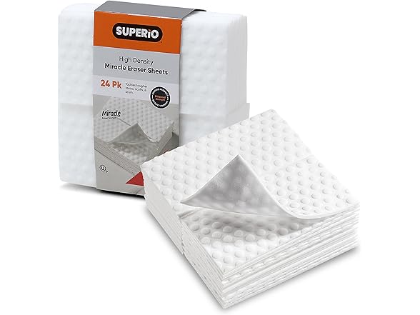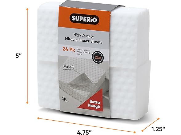 Rely on the power and longevity of Superio High Density Miracle Eraser Sheets for your most challenging cleaning tasks. These long-lasting cleaning sponges are engineered with a high-density construction and enhanced toughness to effectively remove heavy dirt and ingrained stains. The unique convex surface dots provide extra scrubbing power, making tough jobs easier than ever. Like the original Miracle Eraser, these sheets clean effectively with just water – no harsh detergents needed. Simply wet, squeeze, and wipe to tackle stubborn grime in your kitchen, bathroom, or any other area requiring heavy-duty cleaning. Despite their robust scrubbing power, these high-density sheets are designed to be scratch and streak-free on most surfaces.