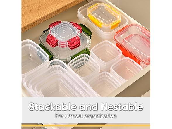 - Stack and Snack-the modular container design offer an efficient solution for storage and organization. By creating containers that stack together seamlessly, this design helps to conserve space in the refrigerator, pantry, and cabinet, ensuring that items remain in an orderly fashion. This container is available in a variety of shapes, colors, and sizes, making it suitable for a wide range of food and easily stackable for space-saving storage.