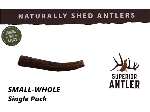 Amazon Brand -1-Small Whole Elk Antler Single Pack. Premium Grade A. Antler Chew. Length 4"-7 Naturally shed, and Made in The USA. Guaranteed Satisfaction.