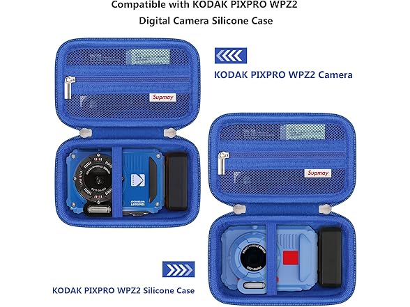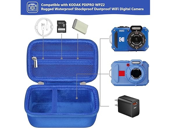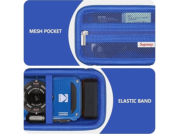 Supmay Hard Protective Case for KODAK PIXPRO WPZ2 Rugged Waterproof Shockproof Dustproof WiFi Digital Camera, Travel Case with Mesh Pocket fits USB Cable, SD Card, Battery, Charging Plug, Blue
