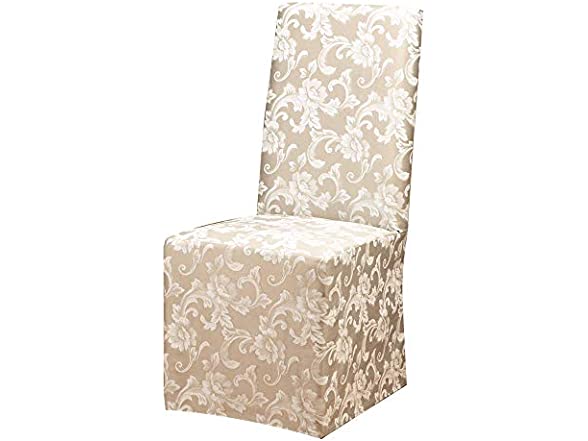 SureFit Scroll Long Dining Chair Slipcover (Champagne) - Full Length Relaxed Fit High Back Chair Cover/Perfect for Adding Accents to Your Dining Room