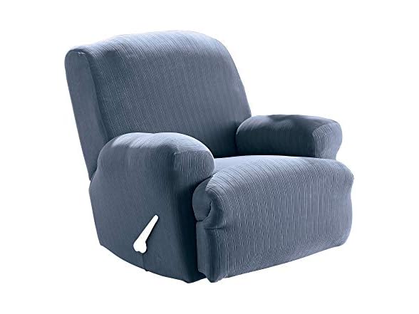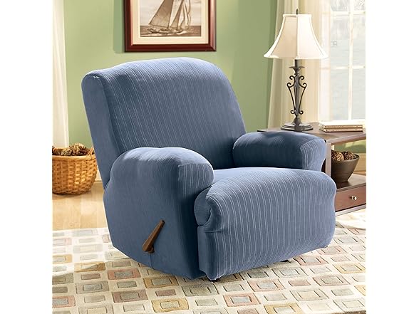 SureFit Stretch Pinstripe 1 Piece Recliner Slipcover in French Blue