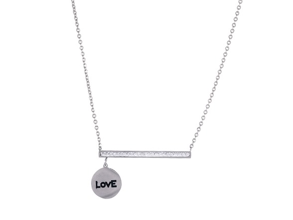 Bliss - NNS384783-C-16 - Swarovski Crystal Elements Bar & "Love" Disc Necklace