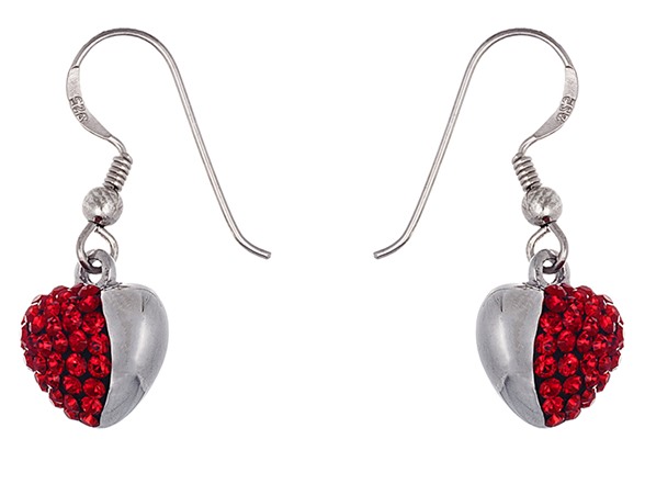 Bliss - NE27770R-CRE - Swarovski Crystal Elements18K White Gold Red Heart Dangle Earring