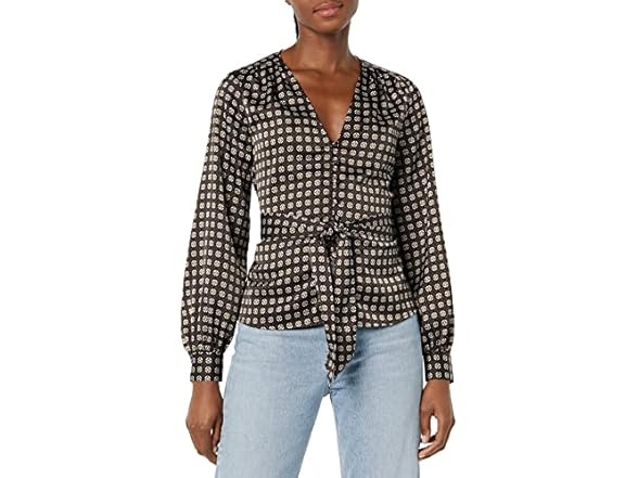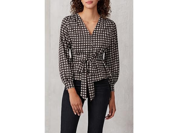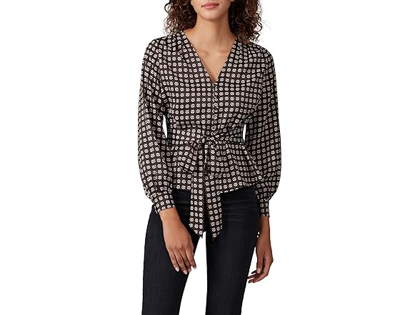 Sweet Baby Jamie Rent the Runway Pre-Loved Geo Print Tie Front Blouse, Brown, X-Small