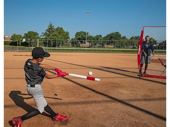 - INSTANT FEEDBACK; The Sweet Spot Bat gives immediate physical and audible feedback when the ball is hit on or off the sweet spot of the bat; With the Training Balls easily see how proper hits and mishits change the distance and trajectory of the ball; Adjust form mid-drill