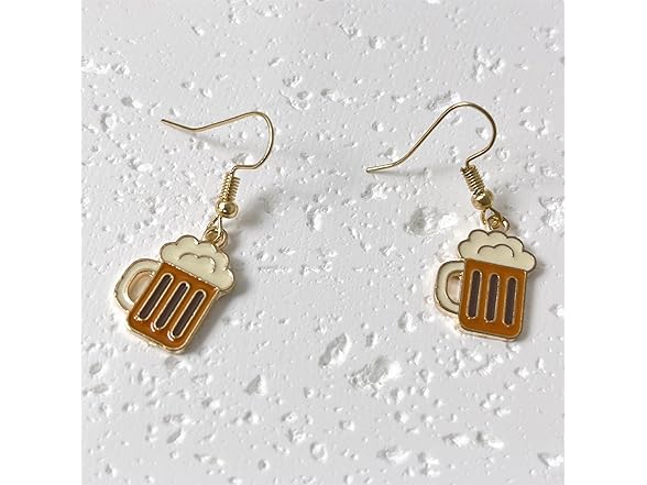 Coke French Fries Earrings Gold Plated Asymmetric Handmade Funny Mini Food Drink Red Bottle Chic Rhinestone Cubic Zirconia Small Dangle Drop Earrings for Women Christmas New Year Party Jewelry Gifts (Beer glass earring)