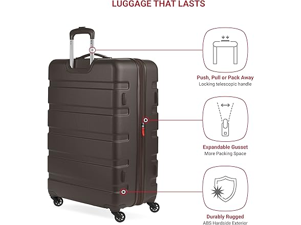 SwissGear 7366 Hardside Expandable Luggage with Spinner Wheels, Chocolate, 2-Piece Set (Weekender/27)