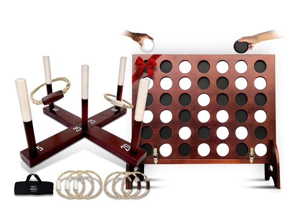 - 💦 WEATHER & WATER RESISTANT - Polished and sealed to withstand the spills & splashes, indoors and out. Whether it's for the game room, patio, camping, lake, or beach. This family tossing game is built to handle it all.