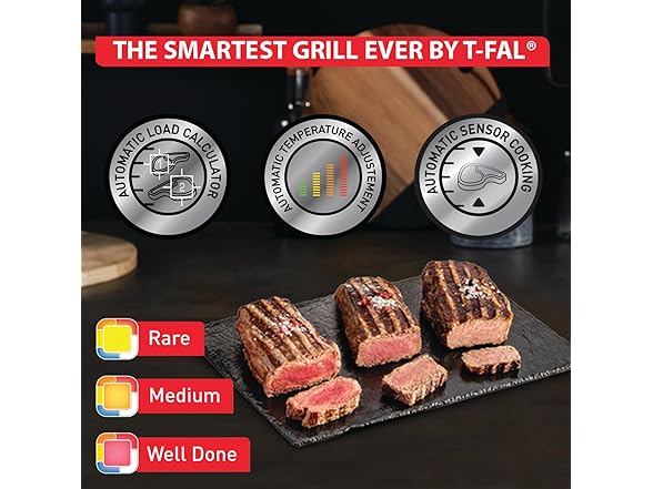 Smart Sensor Technology: Precision grilling on the indoor grill with automatic thickness measurement and cooking adjustment for perfect results from rare to well-done. Intelligent sensors adapt to various food types ensuring consistency every time