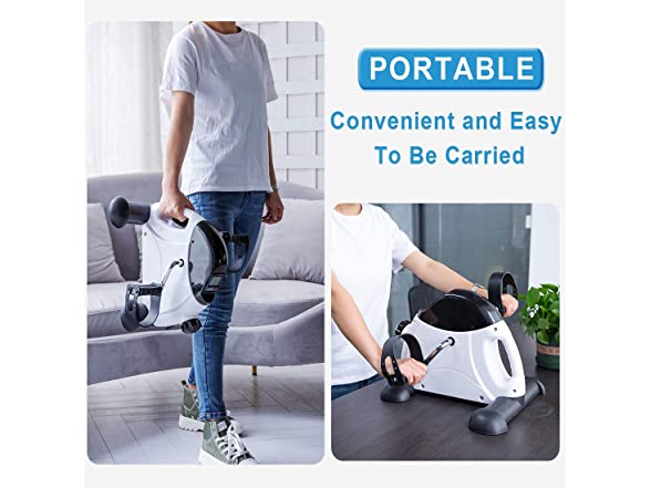 - Lightweight design, portable and easy to assemble. The portable handle function makes the fitness exercise bike always ready. Product size: 13.7" x 15.7" x 11.6". You can put it under the desk, beside the sofa or in the locker. Small size and space saving - can be used at home or office.