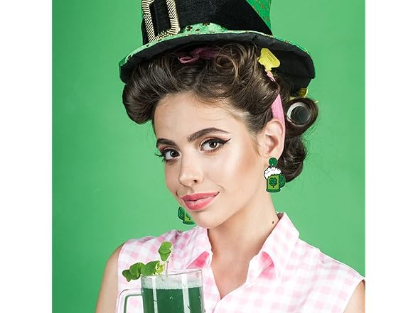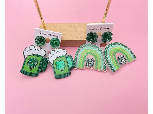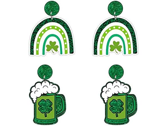 2Pairs Green St Patricks Day Earrings for Women Shamrock Leaf Clover Dangle Earrings Lucky Saint Patricks Day Earrings Holiday Jewelry Gift for Women