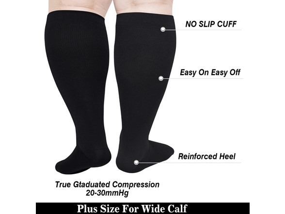 3 PCS Plus size compression socks ‚knee high wide calf 20-30 mmhg 2xl 3xl 4xl 5xl circulation breathable for nurse varices