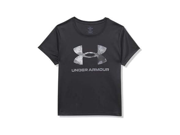 Under Armour Girls Tech Big Logo Print Short Sleeve T Shirt, (001) Black / / Castlerock, Medium