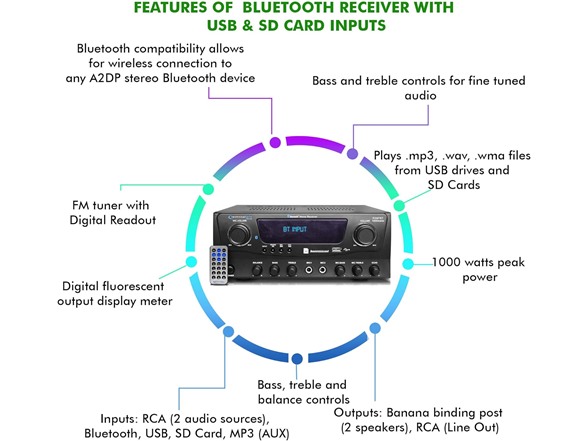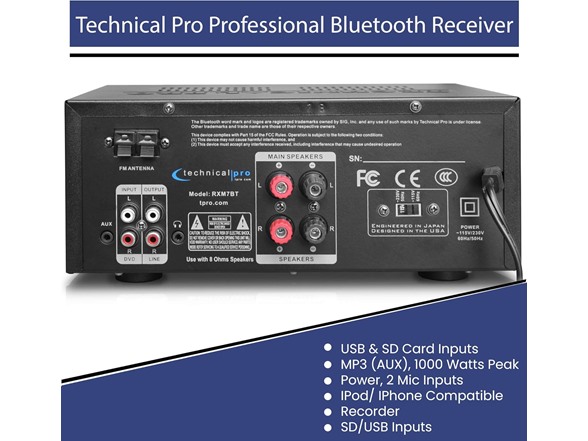 Technical Pro 1000W Peak Power Bluetooth Receiver with Advanced Connectivity and Sound Control"