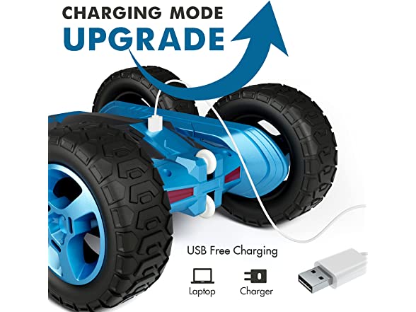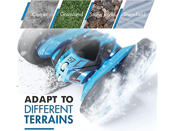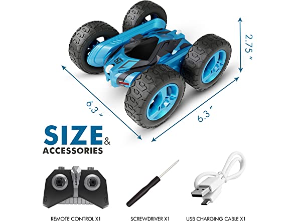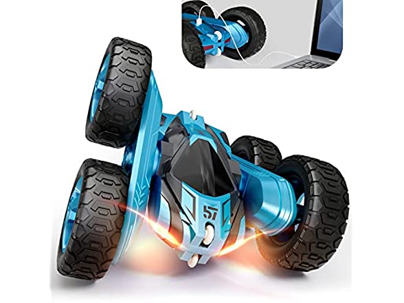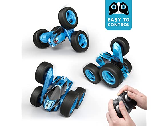Tecnock Remote Control Car for Kids,360 - Rotating Double Sided Flip RC Stunt Car,2.4Ghz 4WD Toy Car with Rechargeable Battery for 45 Min Play,Great Gifts for Boys and Girls(Blue)